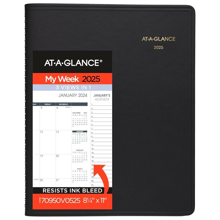 AT A GLANCE 2025 Weekly And Monthly Planner 8 5 X 11 Large Quarter Hour Triple View Black 70950V0525 Amazon de Stationery Office Supplies