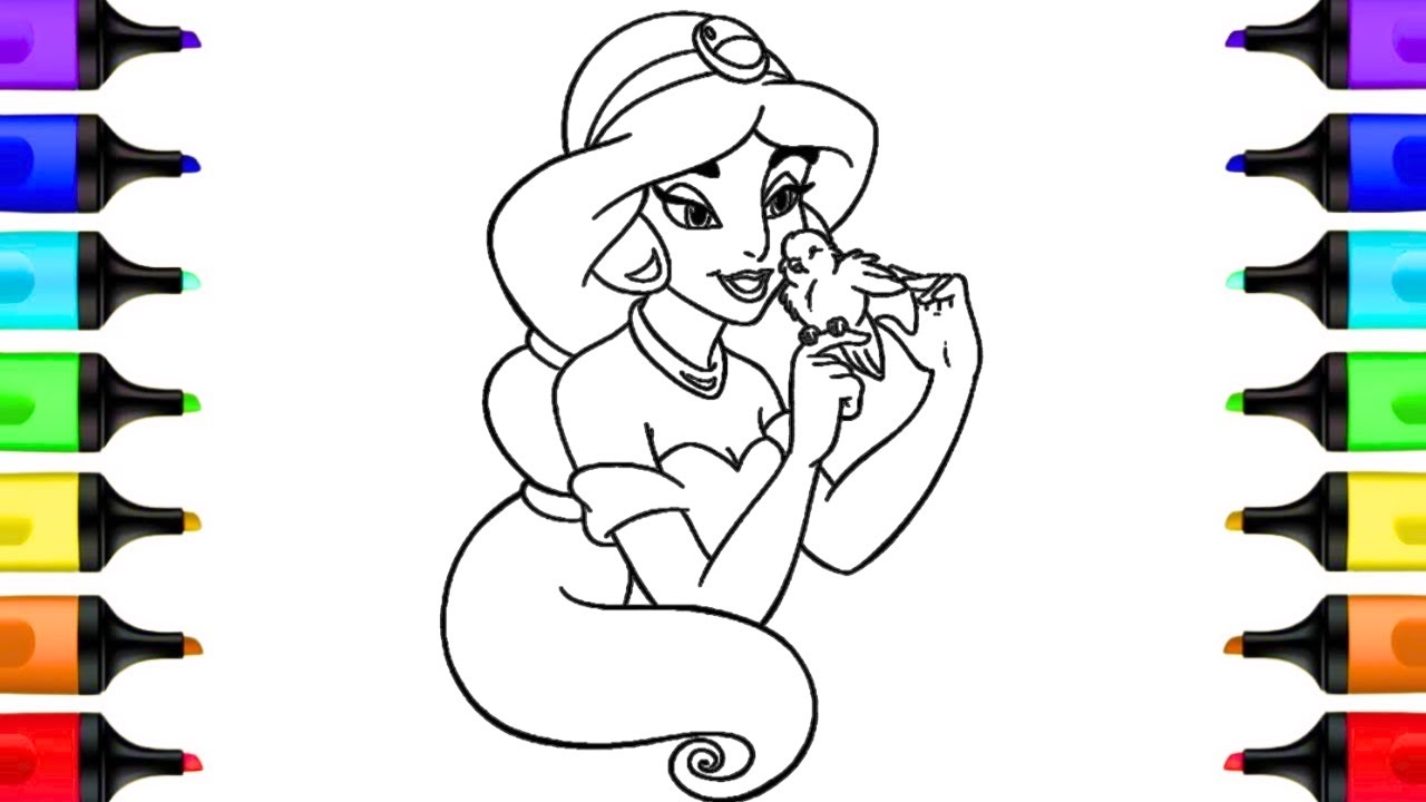 Coloring Princess Jasmine Disney Aladdin Coloring Pages Prismacolor Markers YouTube