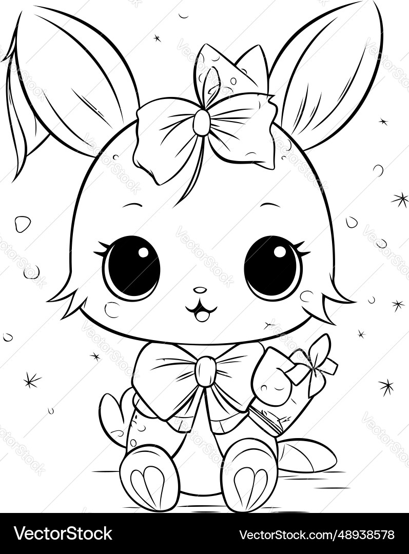 Cute Little Bunny With Bow For Coloring Book Vector Image