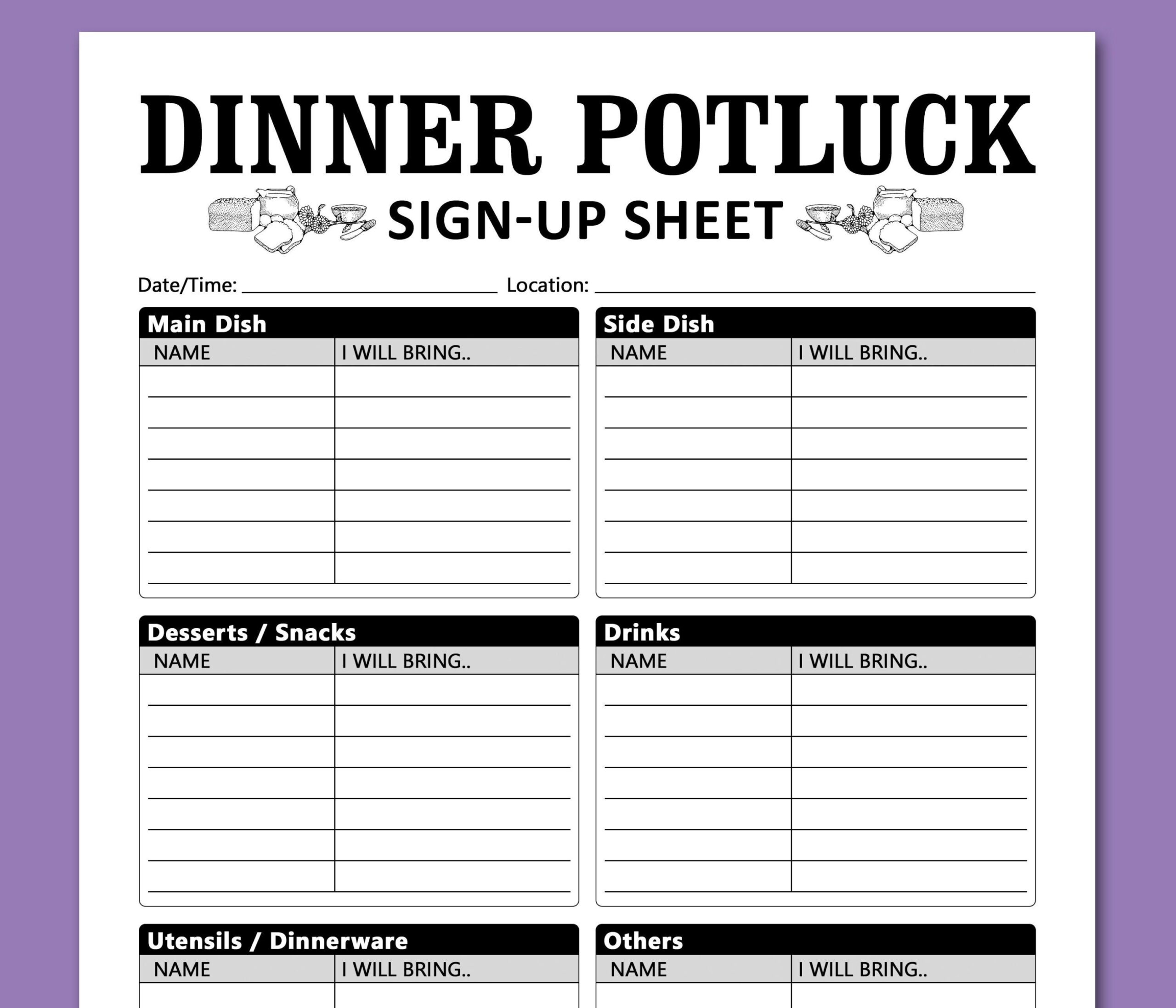 Potluck Sign Up Sheet Feiertage Events Potluck Brunch Dinner Party Food Signup Organizer Instant Download Letter A4 PDF Etsy de