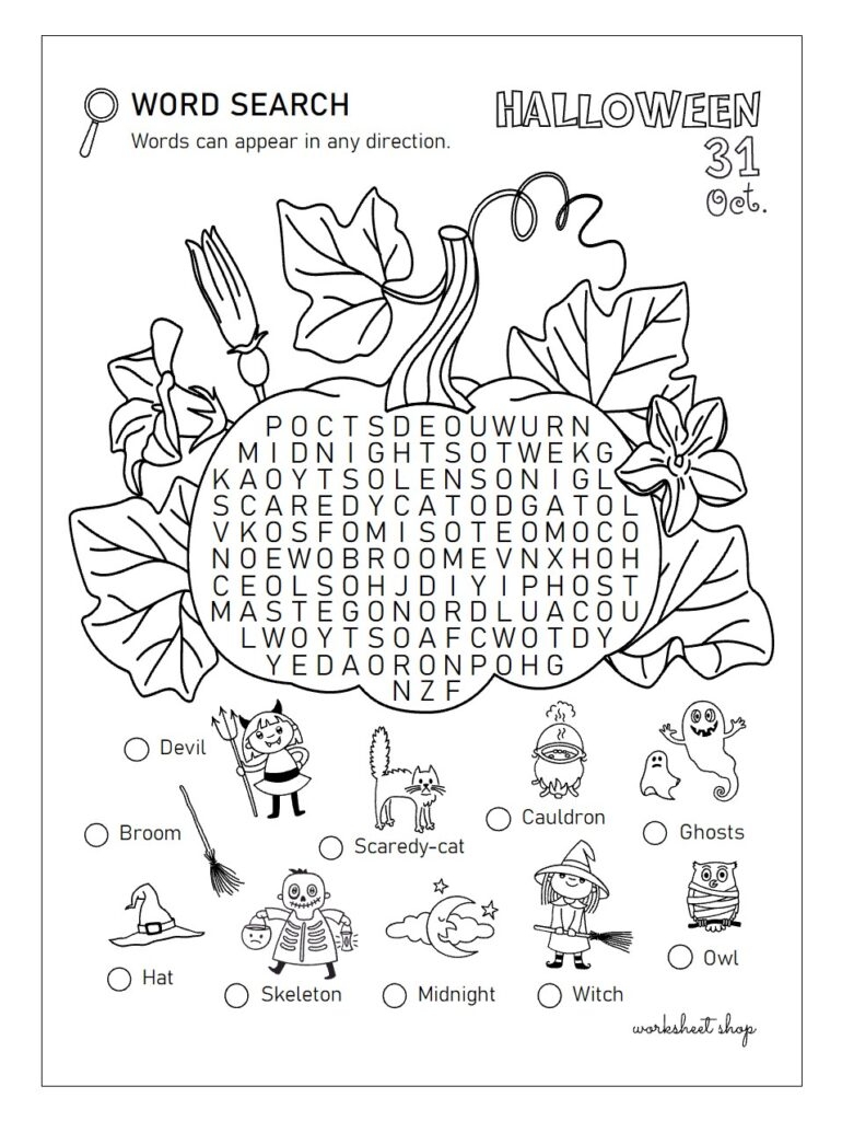One popular Halloween activity is a pumpkin carving worksheet. This allows kids to practice their fine motor skills while getting creative with designs for their jack-o’-lanterns. Another fun option is a Halloween word search, which helps improve vocabulary and spelling in a festive way.