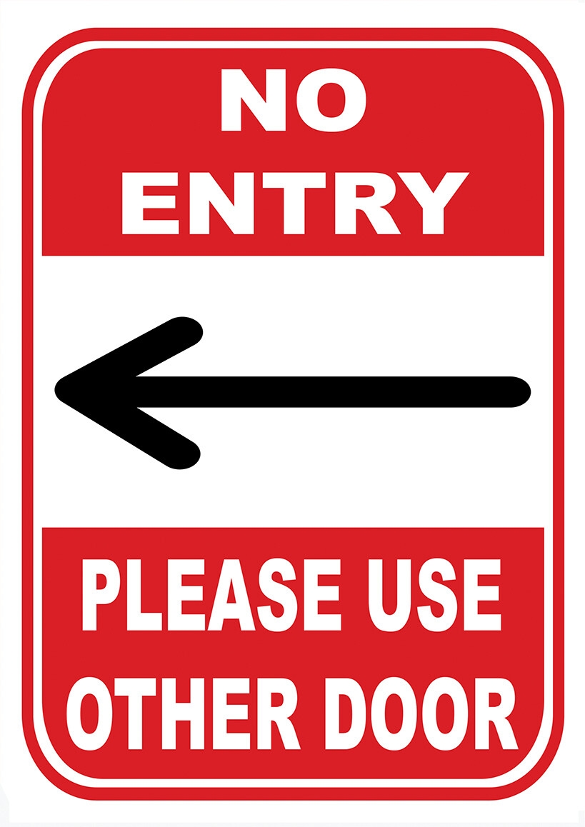 Sign Adhesive Sticker Notice No Entry Please Use Other Door Entrance Left Arrow EBay de
