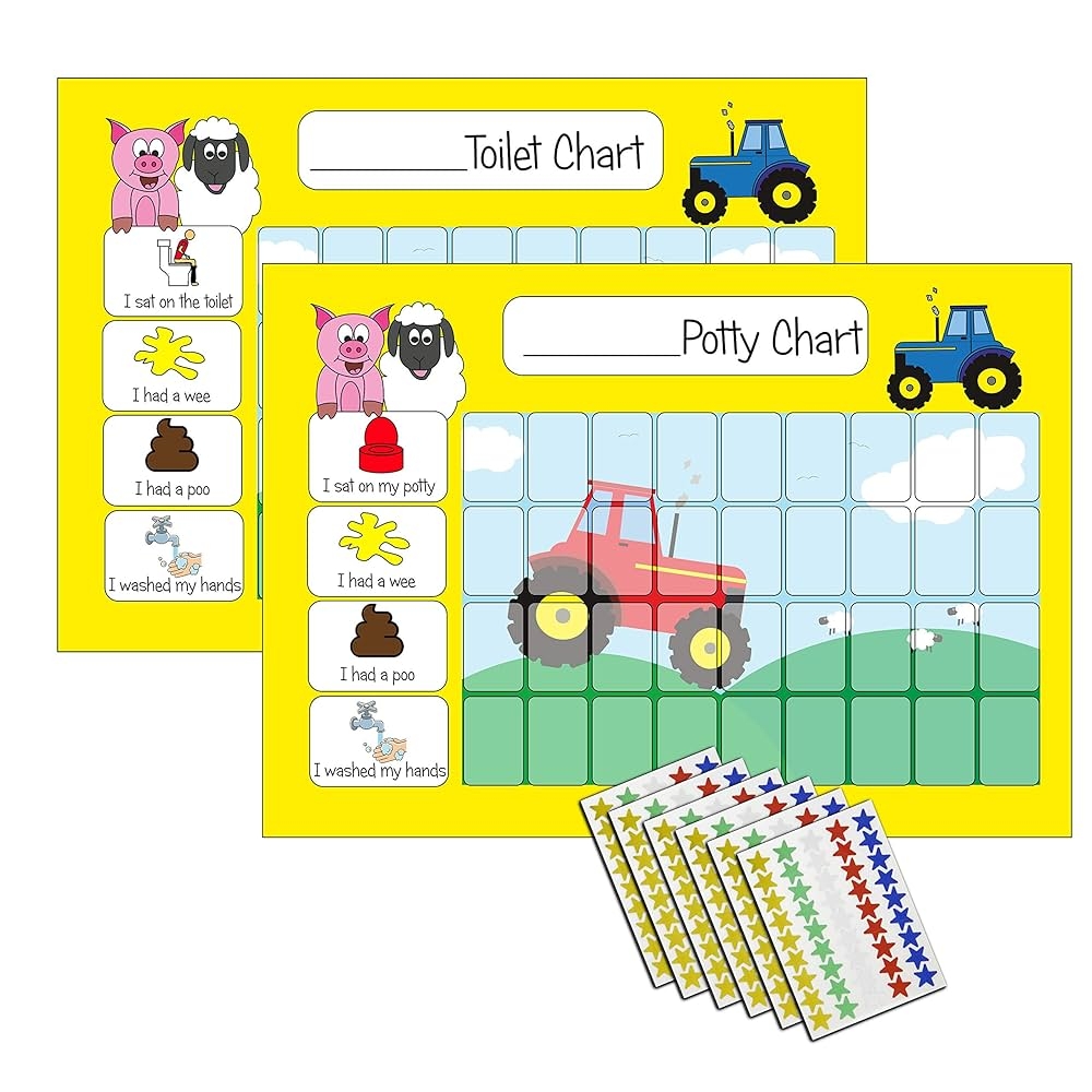 Kids2learn Potty Training Reward Board Toilet Training Star Map For Toddlers Twin Pack With 270 Star Stickers Tractor Theme Amazon de Toys