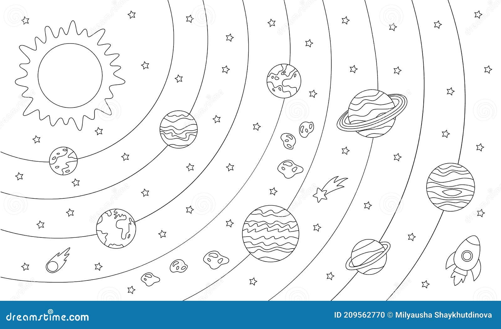 Color Solar System Scheme Coloring Sheet For Kids Stock Vector Illustration Of Background Universe 209562770