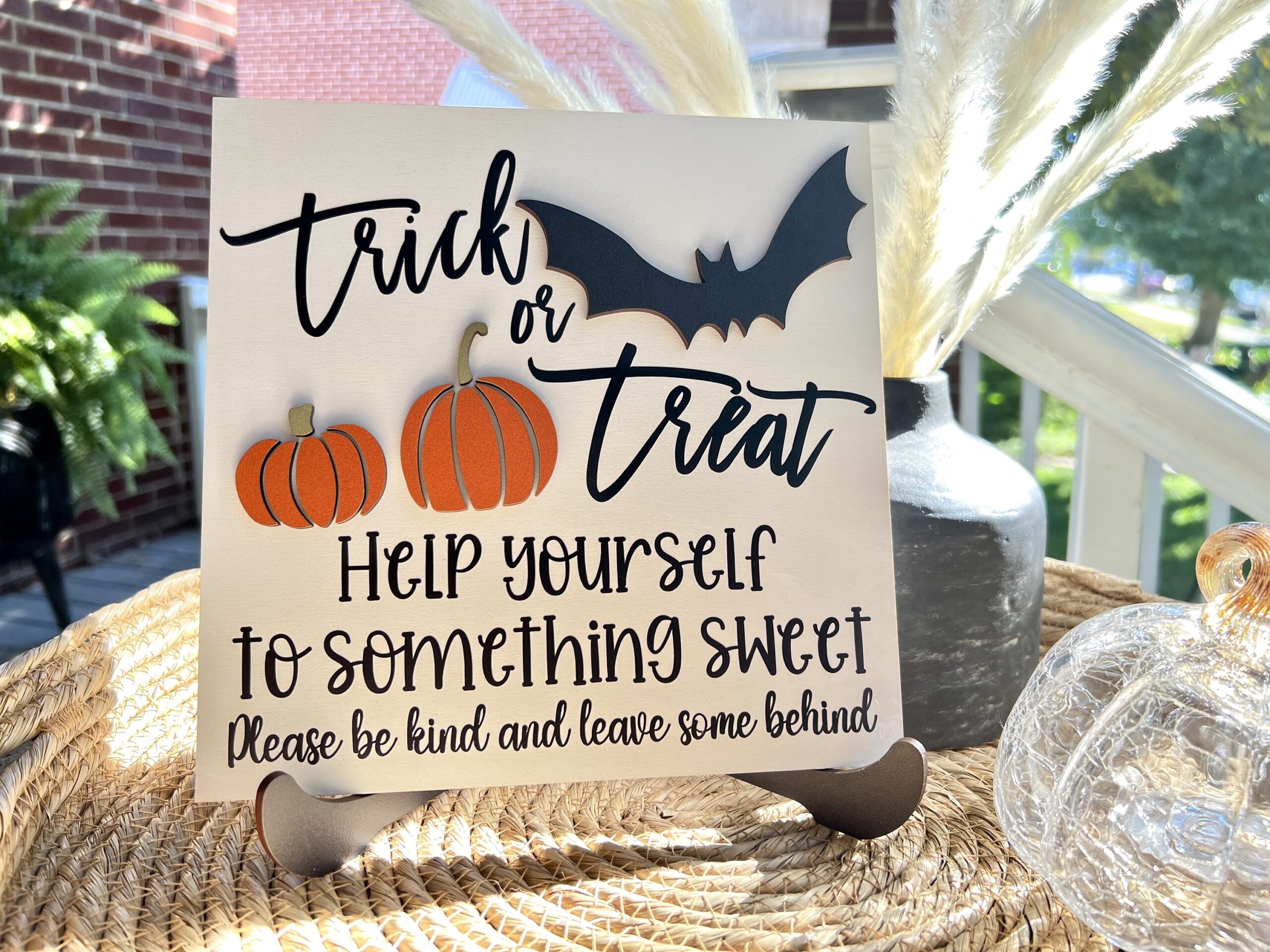 Halloween Trick or Treat Candy Sign Away From Home Halloween Candy Sign Bat Pumpkin Help Yourself To Something Sweet Etsy de