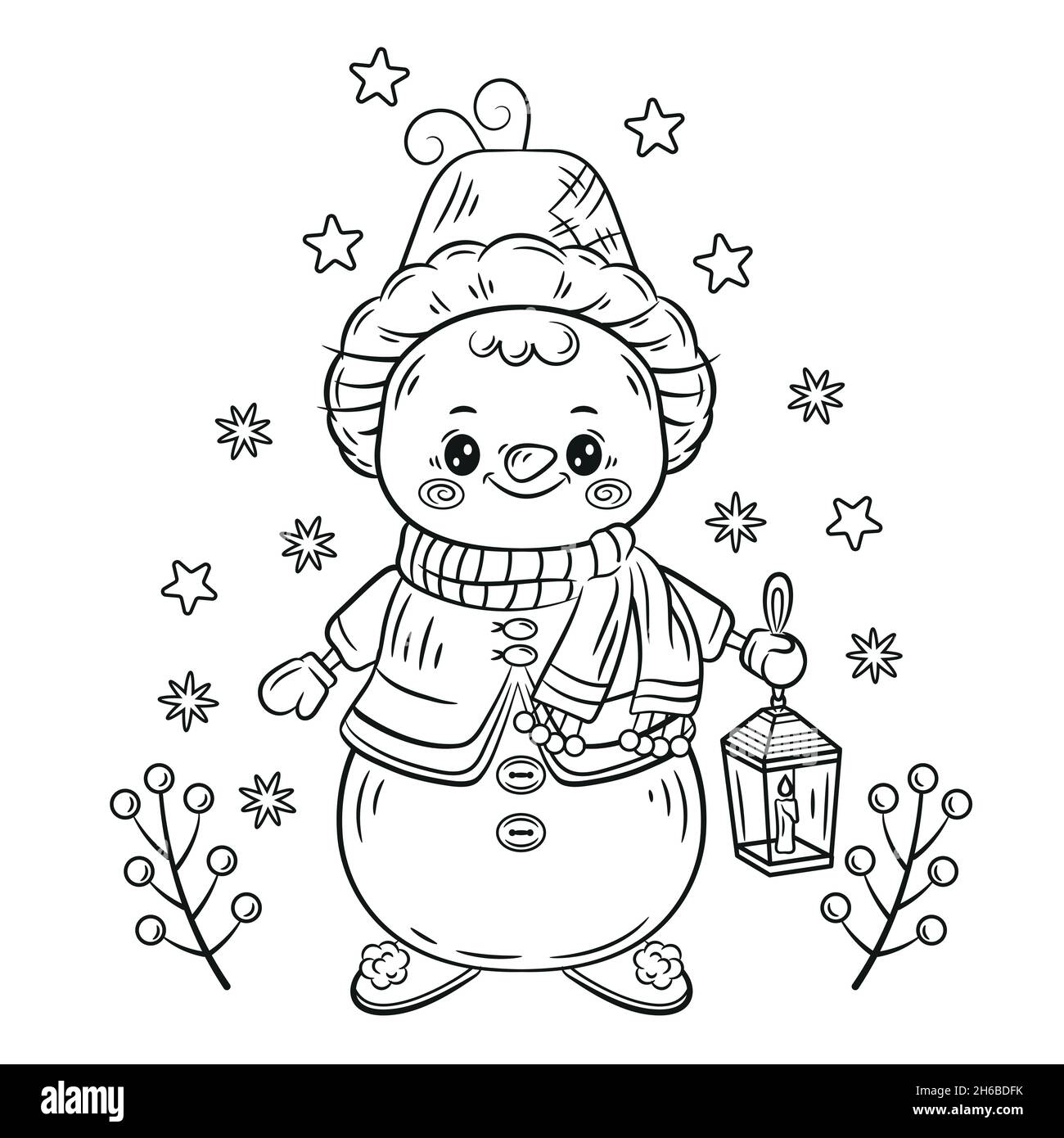 Winter Holidays Joy Themed Coloring Page With Big Magic Candy Cane Owl Snowman Two Cheerful Snowflakes Outdoor Scene Royalty Free SVG Cliparts Vectors And Stock Illustration Image 121550233